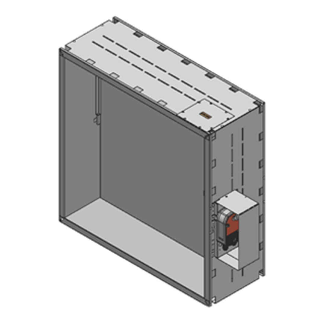 Заслонка коробчатого типа изготовлена из оцинкованной стали и заполнена огнестойким теплоизолирующим материалом. Пространственная ориентация клапана при установке может быть произвольной, но при этом необходимо обеспечить свободный доступ к приводу для обслуживания.