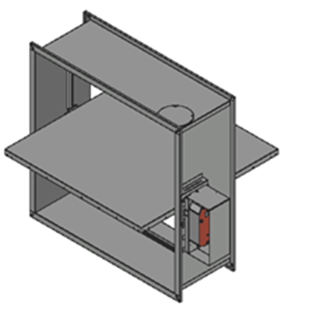 Клапан канального исполнения предназначен для установки в системы вентиляции с возможностью подключения воздуховода хотя бы с одной стороны. Он состоит из прямоугольного корпуса, заслонки и привода, размещенного снаружи корпуса. Корпус выполнен из оцинкованной стали и конструктивно представляет собой отрезок воздуховода длиной 320 мм с интегрированными фланцами для подключения.