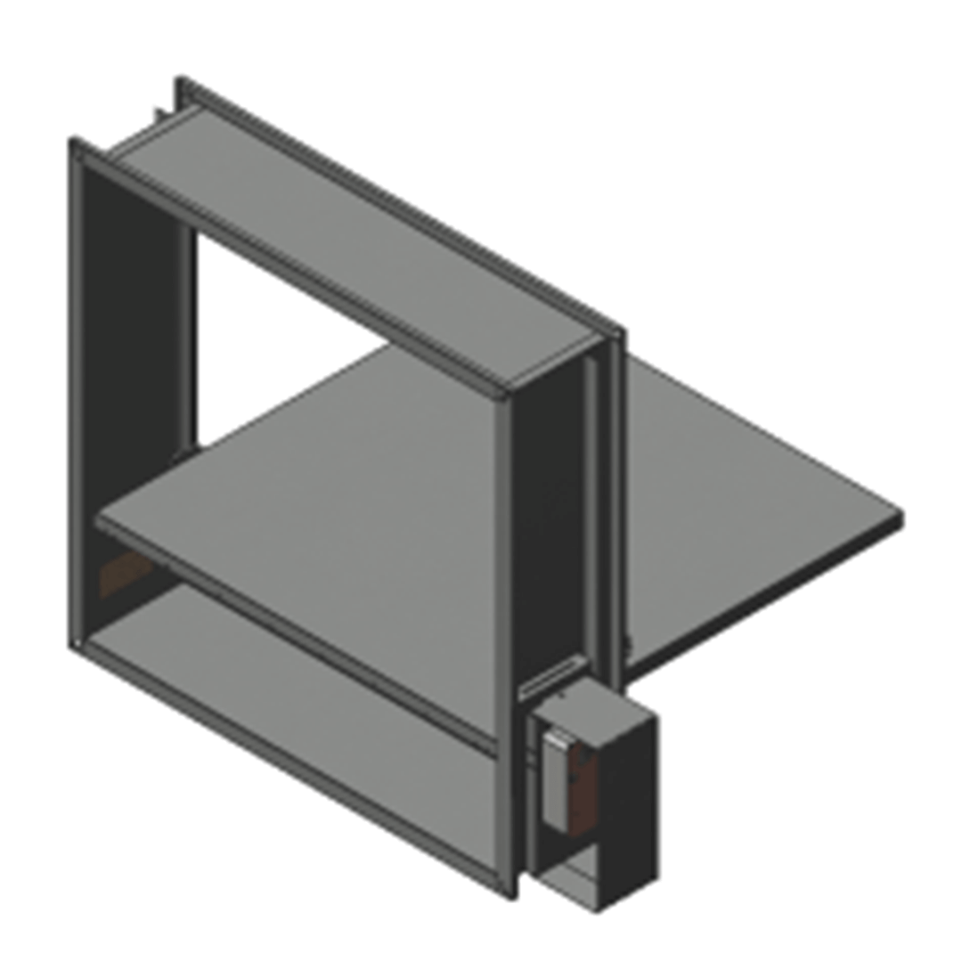 Заслонка коробчатого типа выполнена из оцинкованной стали и заполнена огнестойким теплоизолирующим материалом. В открытом положении она не выходит за лицевую сторону корпуса, что позволяет устанавливать декоративную решетку.