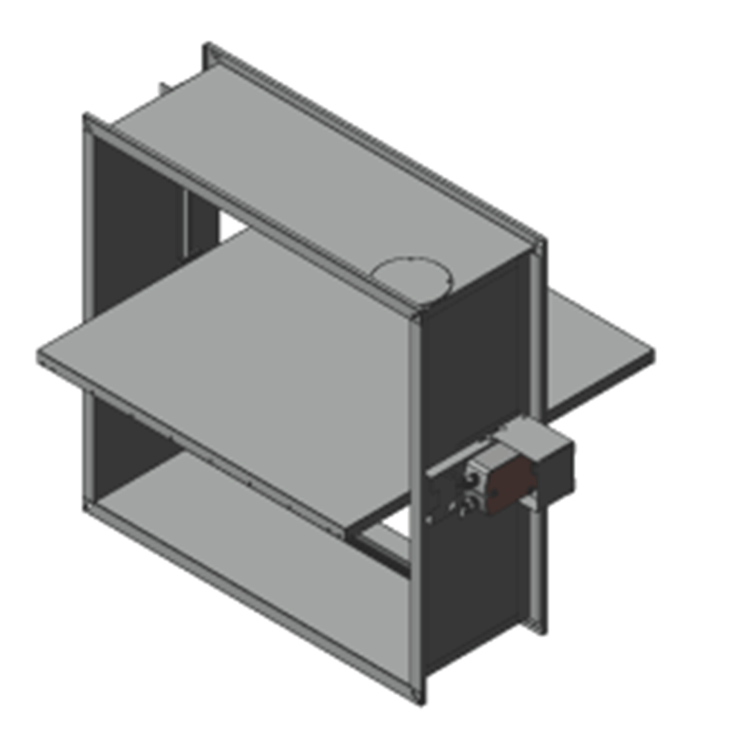 Особенность модификации заключается в расположении привода вдоль глубины корпуса на оси вращения заслонки, что позволяет уменьшить габаритные размеры клапана, делая его более удобным для установки в ограниченных пространствах.