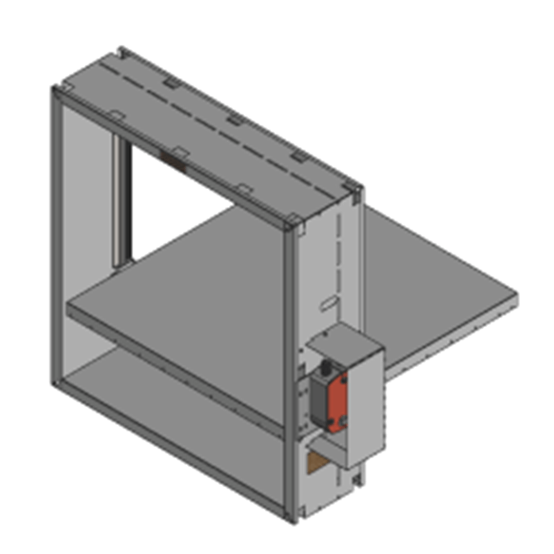 Заслонка коробчатого типа изготовлена из оцинкованной стали и заполнена огнестойким теплоизолирующим материалом. В открытом положении она не выступает за пределы корпуса с лицевой стороны, что делает возможной установку декоративной решетки.