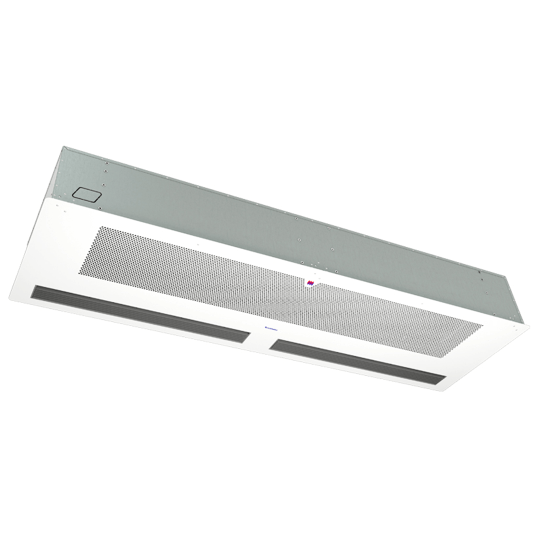 Встраиваемая потолочная воздушная завеса для проёмов высотой до 2,5 метров. Завеса предназначена для скрытой установки за подвесным потолком. Сервис и обслуживание осуществляется через переднюю панель завесы.