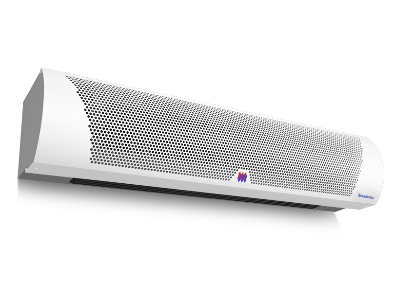 Тепловая завеса Комфорт для проемов высотой от 2 м до 2,5 м. Переднее всасывание воздуха допускает установку завесы в ограниченном пространстве. По заказу панель — из нержавеющей стали.