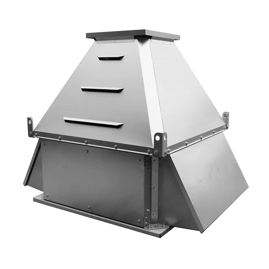Крышный вентилятор ВКРФ ДУ №8 устанавливается на кровле зданий с любым кровельным покрытием и углом наклона, применяются в аварийных системах вытяжной вентиляции для удаления дыма, газов и избыточного тепла при возникновении пожара или задымления. Предельная температура перемещаемой рабочей среды до +400°С (минимальная гарантированная работоспособность 2 часа, рабочее колесо из жаростойкой углеродистой стали) или +600°С (в течение часа, колесо изготовлено из жаростойкой нержавеющей стали).