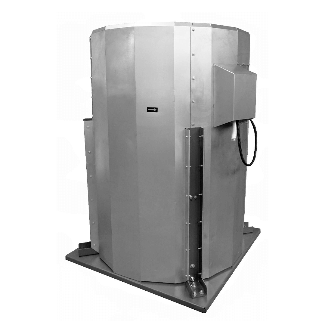 Крышный вентилятор ВКРФм ДУ №10 устанавливается на кровле зданий с любым покрытием и углом наклона, применяются системах противодымной вытяжной вентиляции для удаления дыма, газов и избыточного тепла при возникновении пожара или задымления. Предельная температура перемещаемой рабочей среды до +400°С (минимальная гарантированная работоспособность 2 часа, рабочее колесо из жаростойкой углеродистой стали) или +600°С (в течение часа, колесо изготовлено из жаростойкой нержавеющей стали).