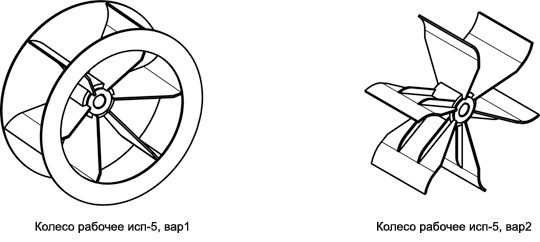 Основной элемент – рабочее колесо с 6 или 8 лопатками, установленное в корпусе-«улитке». Привод осуществляется асинхронным двигателем через клиноременную передачу (исполнение 5) или напрямую (исполнение 1).